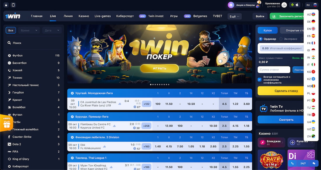 Официальный сайт платформы 1 win выделяется своим интуитивно понятным интерфейсом, в котором легко разберется даже начинающий пользователь. На сайте представлены два ключевых раздела: букмекерская контора и онлайн казино. Это позволяет каждому пользователю найти развлечение по душе – будь то ставки на спорт или азартные игры.
